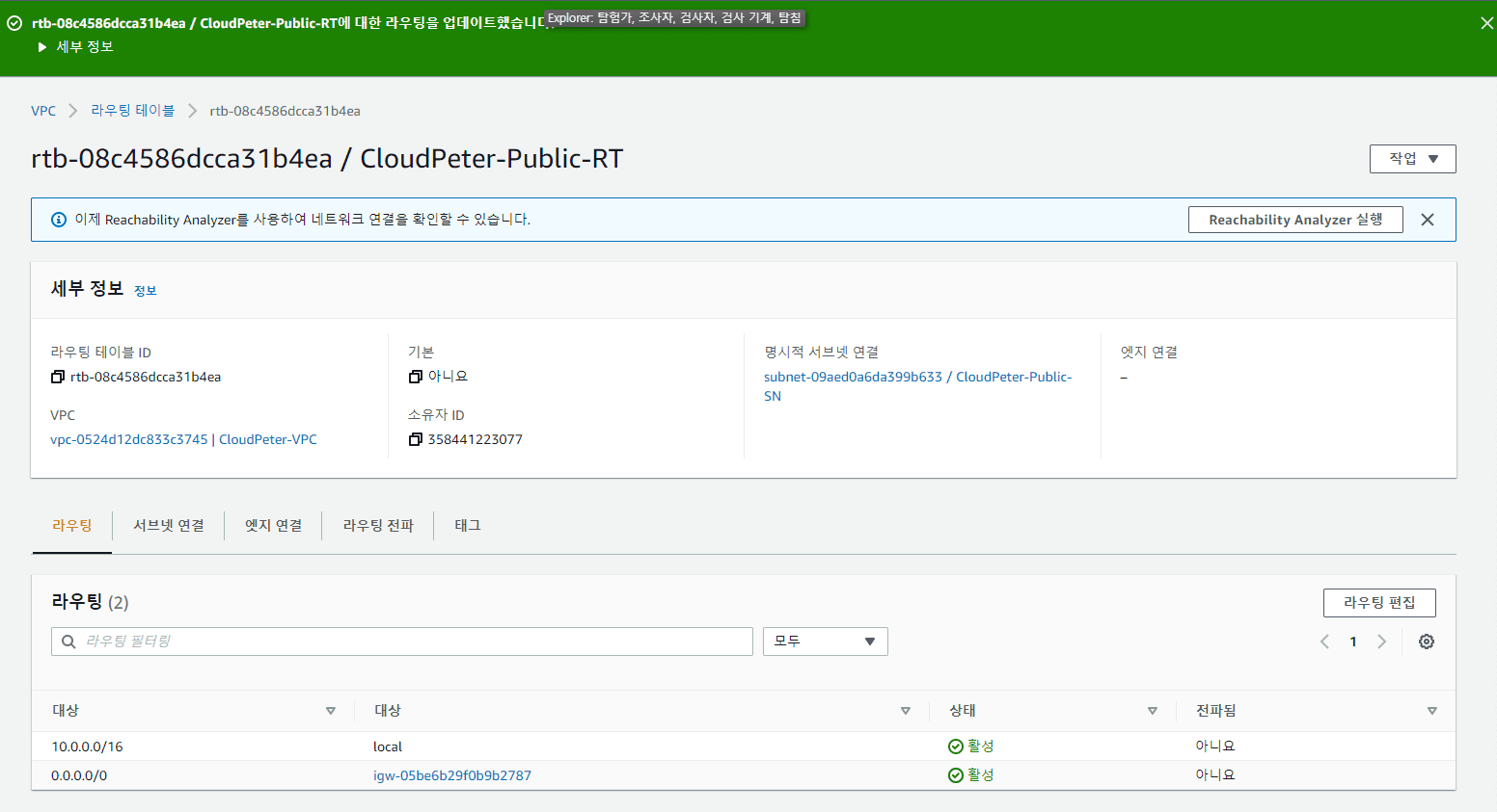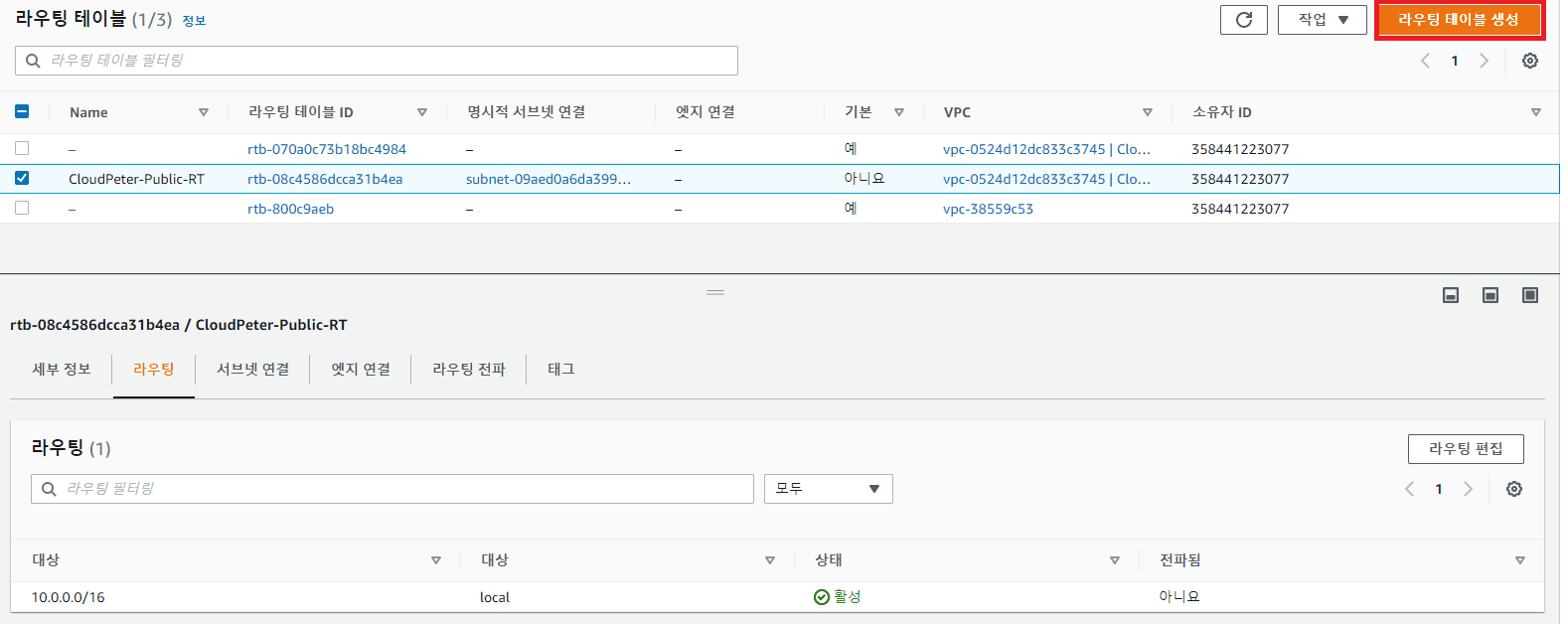 - 이름 태그: CloudPeter-Public-RT