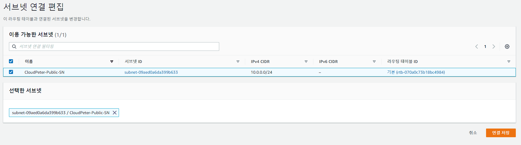 프라이빗 서브넷 (CloudPeter-Private-SN) 선택